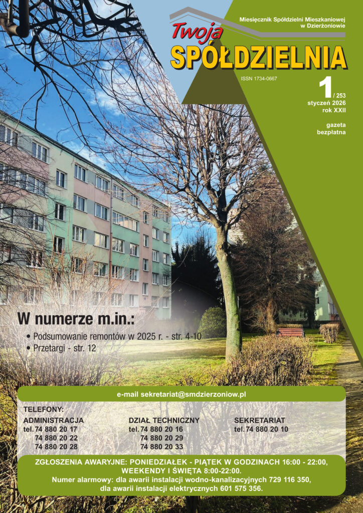 Do przeczytania jest 253 (styczeń 2026) numer bezpłatnego miesięcznika Spółdzielni Mieszkaniowej w Dzierżoniowie „Twoja Spółdzielnia”. Gazetę można czytać zarówno w wersji papierowej, jak i internetowej. Zachęcamy do lektury.